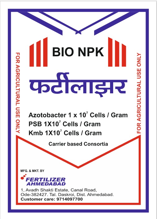 Bacteria in Bio NPK fix Nitrogen from air to roots, enhance Phosphate and Potassium uptake from soil, and mobilize Potassium in stable form.